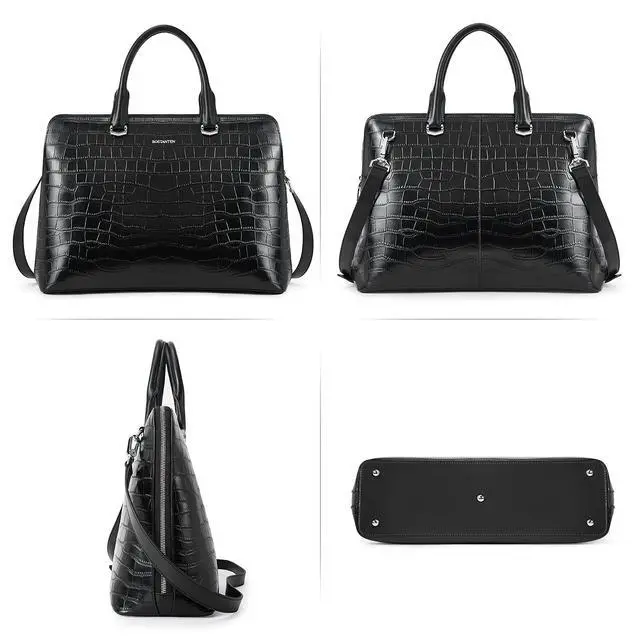 Stylish briefcase for womenMade of cow leather, crocodile leather texture design with high-quality silver hardware, simple and high-level sense. Come with an adjustable strap, can be used as a stylish handbag, a business laptop briefcase, and a crossbody bag. ^^ Well designedU-shape zipper closure for easy access and store items. The construction is very strong to maintains a perfect contour and is not easily deformed. With the studs at the bottom, the laptop bag for women stand even when full of your 15.6 '' laptop, 9 iPad Pro, document, and so on.
