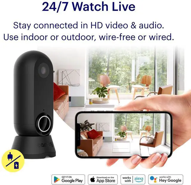 Canary Flex The most versatile HD weatherproof security camera. Use Canary Flex for indoor or outdoor, during rain, snow, heat, or cold. Plug it in or go wire-free on a single charge thanks to built-in lithium-ion batteries. Put it upright or mount it on a wall and twist it on the 360 magnetic swivel base. The Canary Flex wireless security camera records remarkably crisp HD video and audio with automatic night vision and a 116 wide-angle lens. The viewing radius ensures your living room, nursery or garden is entirely visible with vivid clarity the perfect baby monitor or pet camera.