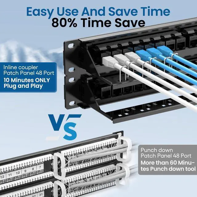 Time-Efficient Deployment: Install our CAT6 patch panel with Inline Keystone in just 10 minutes. Faster than traditional methods, it speeds up network deployment so you can get online and back to work quickly ^^