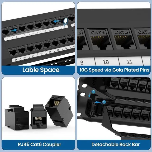 Faster Speeds: Gold-plated pins in our CAT6 patch panel ensure superior conductivity and speeds up to 10G. Ideal for high-performance network applications ^^