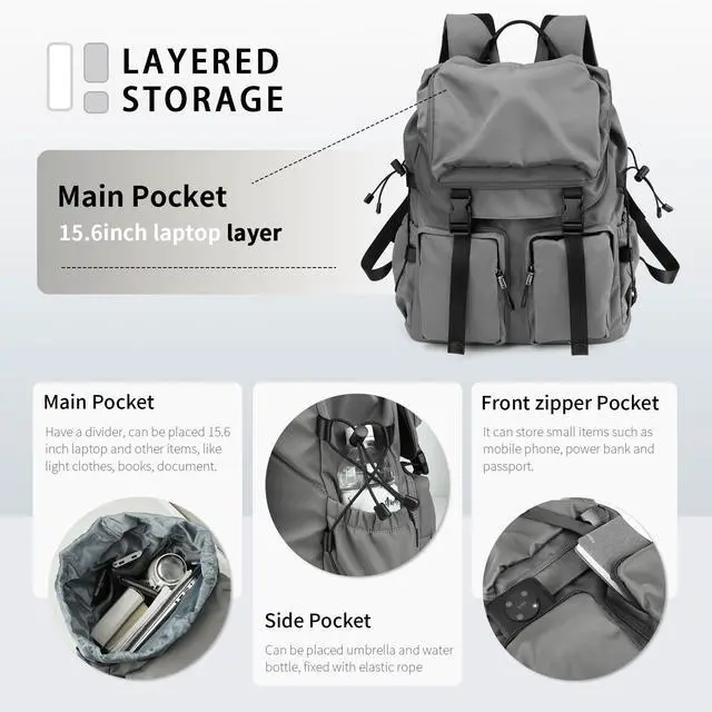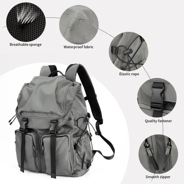 ^^ Multi-functional: This is a very well designed and constructed commuter backpack with multiple excellent features. Good padding on the straps that gives you support and airflow. SBS metal zipper is strong and of good quality and also moves very smoothly, doesn't experience any jamming or sticking. In addition, there are waterproof design, drawstring design, shoulder strap non-slip buckle design.
