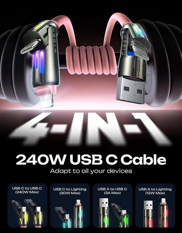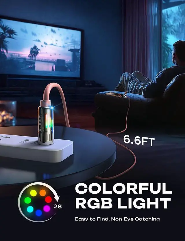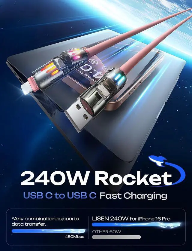 It is a soft light, not flashing eyes, full of gaming atmosphere. ^^ [What You Get] LISEN pink iphone charger cable 6.6FT, a length suitable for any situation, so you no longer need to stay near a power outlet. Additionally, our reliable customer service is available 24/7if you have any questions or issues, feel free to contact us. We guarantee resolution within 24 hours. Please note, the 240W Type-C cable can power laptops through the Thunderbolt port, but it is not a USB 3.0 /4K cable.