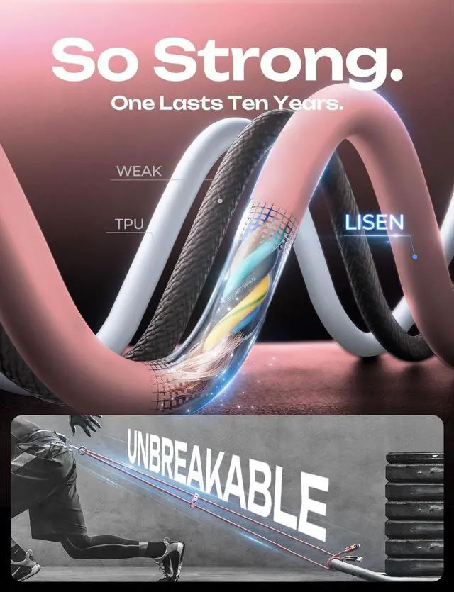 USB C port: Just 35 minutes, it can charge your iPhone 16 to 96%, Switch to 90%, Samsung S23 to 96%, MacBook Pro to 86%, and iPad Pro to 89%. Just ensure you're using a compatible USB-C adapter with sufficient power for optimal results. It is worth mentioning that any combination of connectors has a data transfer speed of 480Mbps, 1200 songs per minute. ^^ [So Strong Heavy-Duty Thickened Silicone] The heavy-duty USB-C cable boasts an impressive 50, 000+ bend lifespan! Made from food-grade, skin-friendly silicone with a baby-soft touch, its tangle-free, waterproof, and easy to clean. The sturdy zinc alloy housing is 1000 times stronger than plastic, ensuring consistent and reliable charging every time. The stylish leather strap keeps storage neat and organized, offering ultimate convenience. ^^ [PD 3.1 Emark Safe Chip & RGB light] The USB C to USB C Cable EMARK 3.1 chip not only enables 240W fast charging but also maximizes device safety, ensuring 24-hour constant temperature charging. It automatically stops charging once the device is fully charged, preventing overcharging and battery damage. And RGB lights on both ports will keep changing colours when charging.