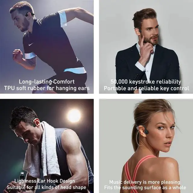 Open-Ear Design- Patented bone conduction headphones deliver premium audio through the cheekbone. Unlike over ear headphones, doqo keeps you connected and aware of your surroundings. ^^ Lightweight & Comfortable - Experience unmatched comfort with our most lightweight and comfortable sport headset, featuring a bud-free, pain-free design for all-day listening. ^^ 8-Hours of Music & Calls- Enjoy 8 continuous hours of music or podcasts, plus dual noise-canceling mics for crystal clear calls with our wireless Bluetooth headphones. ^^ IP67 Waterproof Rating - Completely sweat and waterproof earphones for workouts, fitness and running.