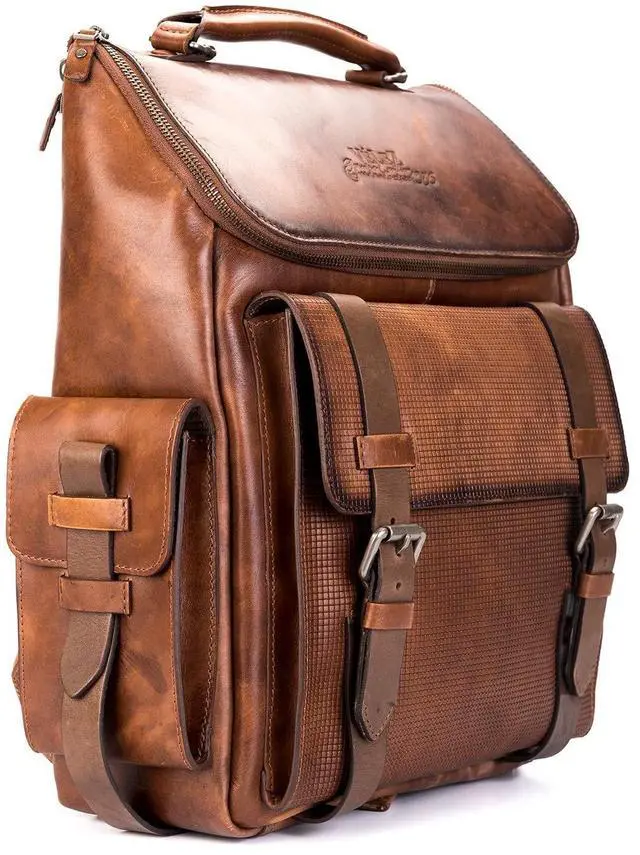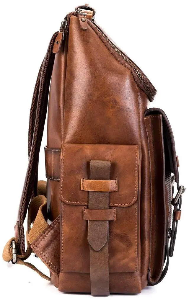 DISTINCTIVE VINTAGE CHARACTER: Our men leather backpack boasts a distinctive vintage character that evolves with time, gaining even more charm, richness, and personality as the genuine leather softens, deepens in color, and tells your story