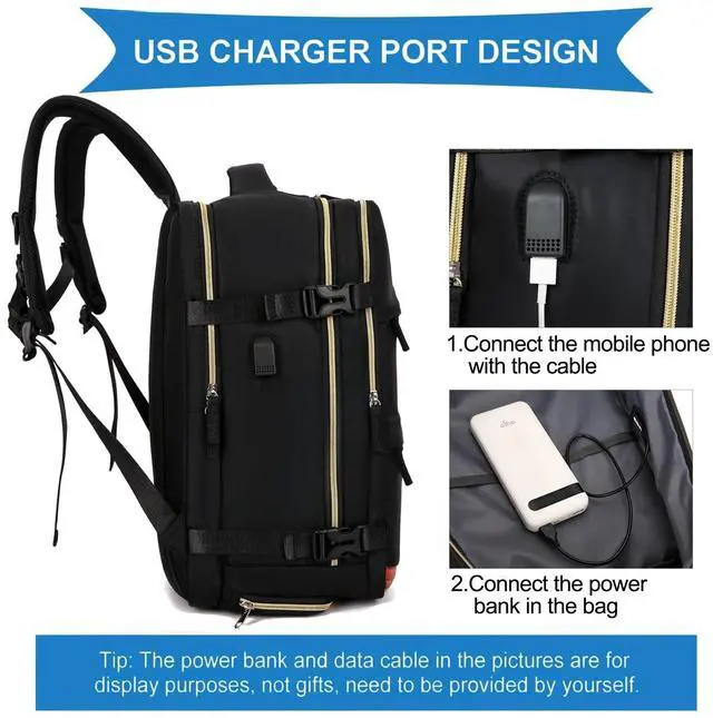 PERSONAL ITEM TRAVEL BAGThis travel backpack features a spacious capacity with a reasonable partition. One spacious packing compartment roomy for daily necessities, tech electronics accessories. Front compartment with many pockets, makes your item organized and easier to find. The side of the backpack is equipped with a built-in USB charging port to charge your phone anytime, anywhere. ^^ LAPTOP BACKPACK FLIGHT APPROVEDThis laptop backpack is suitable for 16-inch laptops. This travel backpack fits perfectly under the seat on the plane or under the overhead luggage rack without paying extra for the flight.