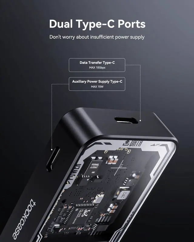 PLP Prevent Writing Data Loss: The Power Loss Protection of DOCKCASE Smart SSD Enclosure provides around 10 seconds of writing time after power failure (the actual time will be affected by the working state and power consumption of the SSD), no data loss, no disk damage ^^
