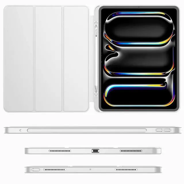 [Supports Pencil Pro and Pencil (USB-C)] This iPad Pro case fully supports Pencil Pro and Pencil (USB-C) with a recessed side groove for magnetic charging and a magnetic clasp to keep your Pencil secure