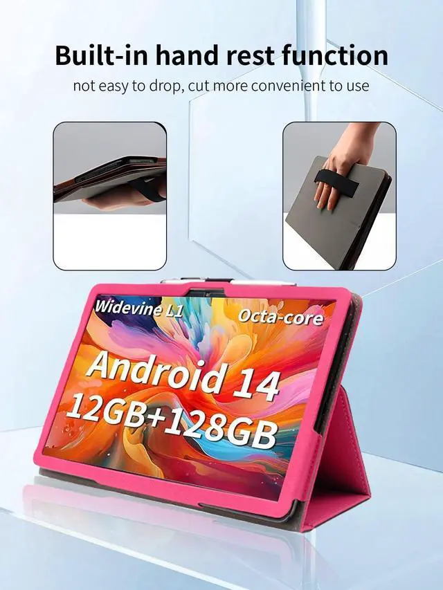 Case for TUOHAITIME C5 11 inch Android 14 Tablet 2024 New,Leather Slim Folding Stand Cover with Hand Strap Magnet for Men Women Full Protection,Rose Red.