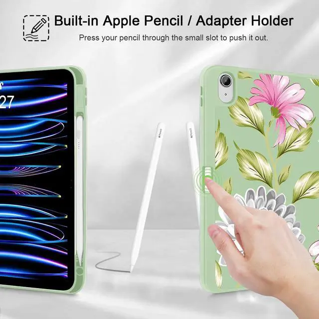 Mektron Case for iPad Air 11 inch (M3 2025 7th /M2 2024 6th), Compatible with iPad Air 10.9" (2022 5th Gen /2020 4th Gen) Tablet Cover Buit in Pencil Holder with Auto Wake/Sleep, Floral C398