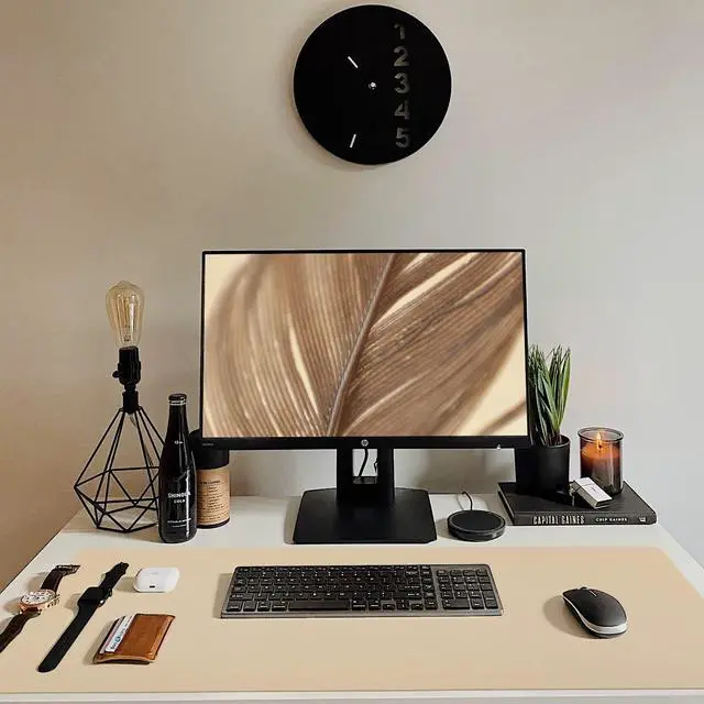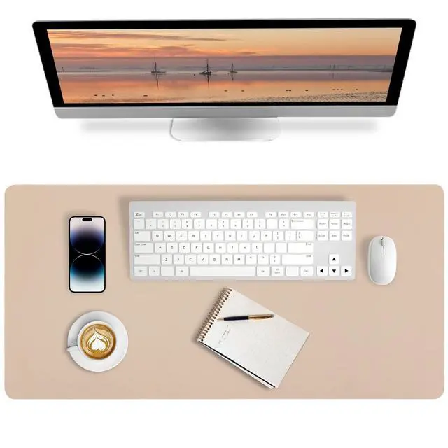Quality Desk PadLonnom desk pads is made of durable PU leather material, the leather is soft and not too thin to protect your desk from scratches, stains, spills, ink, heat and scuffs, providing you with a clean and tidy desk. ^^ Anti-slip Base with Suede The artificial suede material used on the back of the desk pad has excellent anti-slip stability and softness, so you won't move easily when using the writing desk and can ensure the safety of all your desktop items. ^^ Fatigue Free Office DesignMade of soft memory foam and a smooth breathable fabric, the curved design of both wrist rests fits perfectly around the wrist, providing comfortable support while typing or sliding the mouse, keeping the wrist in a naturally comfortable state.