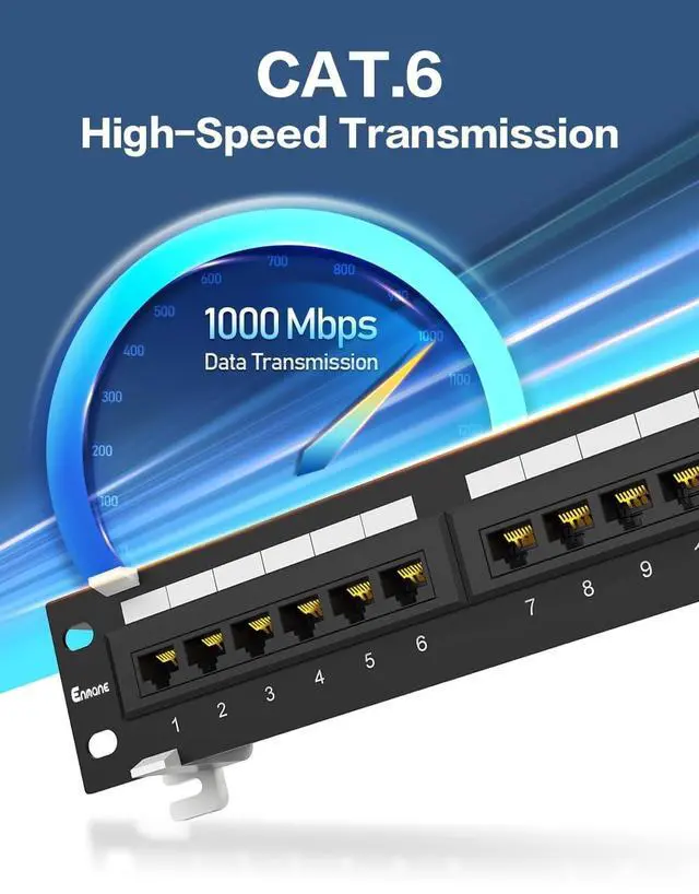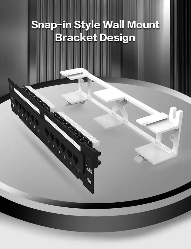 Enmane CAT6 patch panel, the 12 port patch panel wall mount with the included snap-on 89D brackets and mounting screws. ^^ Numbered ports and color-coded T568A and T568B wiring diagram give quick reference. Gold plated contacts ensure a correction free connection. ^^ The mini 12 port cat6 patch panel supports 22 to 26 AWG stranded and solid wire. For use with unshielded twisted pair (UTP) Cat 6/Cat5e /cat5 network cables. ^^ Enmane cat6 patch panel enables quick, easy cable patching. Just plug Cat6 cables into its 12 front RJ45 ports, and use a 110 or Krone punch-down tool to terminate color-coded connections in the rear.
