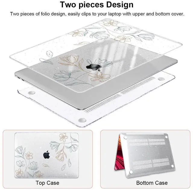 What you get: 1 laptop case for macbook pro 13 inch 2022 M2 1 HD screen protector 1 plastic webcam cover 1 keyboard cleaning brush 1 silicone keyboard cover