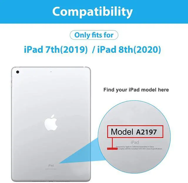 Fit iPad Models: A2197/A2198/A2199/A2200/ A2428 / A2429 / A2430. This ipad case is NOT compatible with any other iPad models; find the model number on the bottom of your iPad. Apple Pencil is not included with our ipad 7th generation case. All buttons and ports of ipad cover are aligned perfectly.