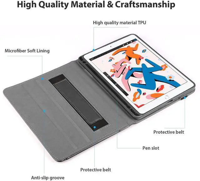 ^^ Apple pencil holder: With our ipad case 10.2 inch 8th generation, keep a firm grip on your Apple pencil to prevent it from falling out. In ipad 8 case you can effortlessly push your pencil out through holes in the back of the holder. Soft TPU covers the ipad 7 case fully. The premium synthetic leather and the inside texture of case for ipad can dissipate heat. The ipad 8th gen case is lightweight and portable, making it ideal for on-the-go use.
