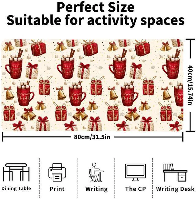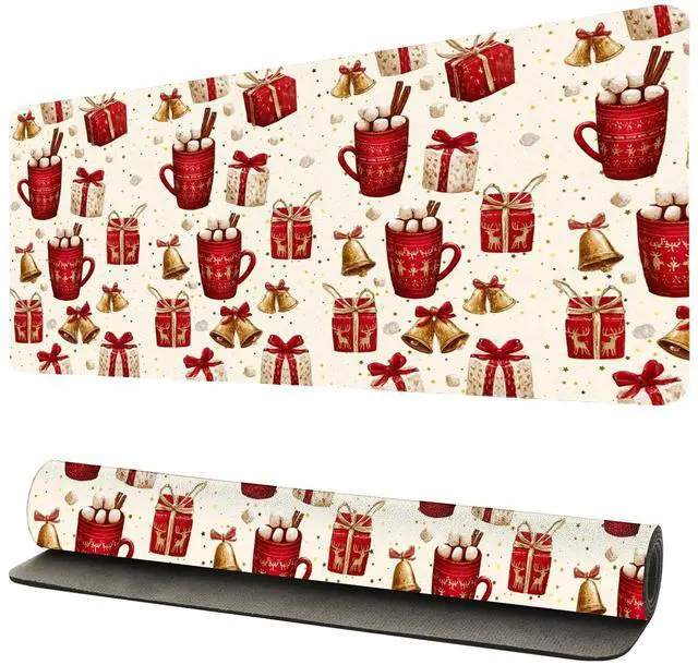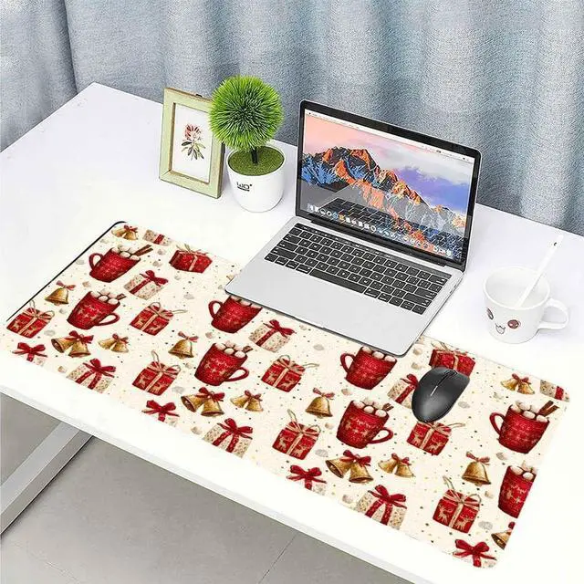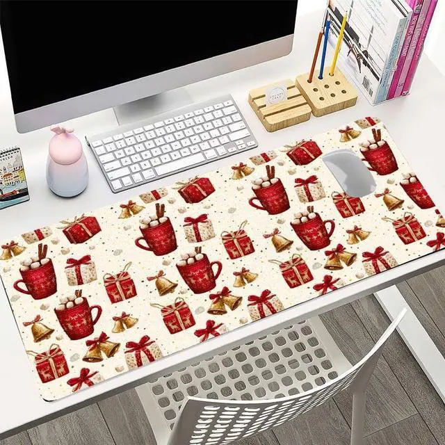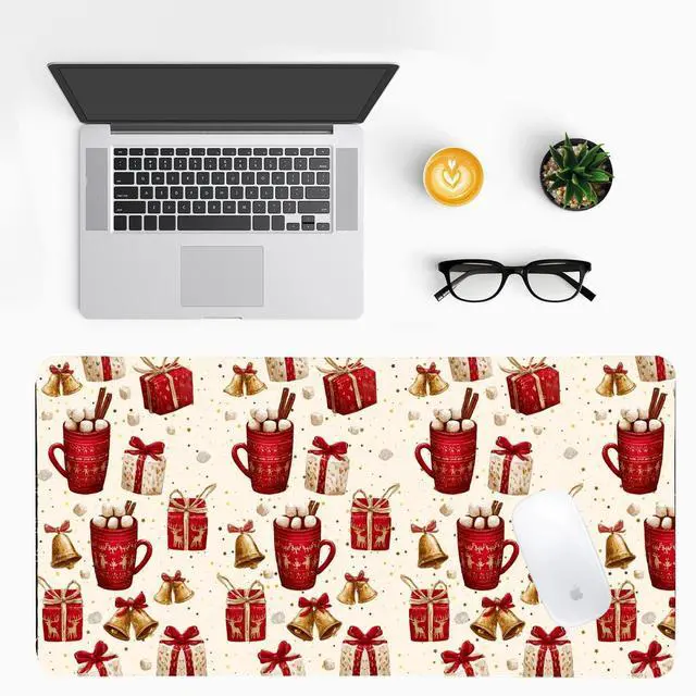 Cozy Hot Cocoa Christmas Theme DesignEmbrace the warmth of the season with this adorable hot cocoa themed desk mat! Featuring charming Christmas mug designs with festive bows and holiday patterns, it creates a cozy and inviting atmosphere in your home officeperfect for sipping hot drinks while you work during the merry season.