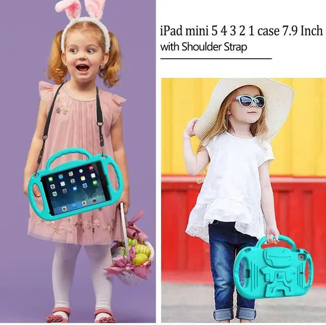 LTROP Kids Case for iPad mini 5th/4th/3rd/2nd/1st Generation (7.9-Inch) for Kids, with Shoulder Strap, Shockproof Handle Stand for iPad mini 5 4 3 2 1, Teal