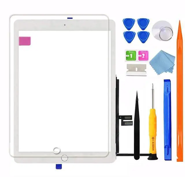 Package List: x1 White for IPad 7th /iPad 8th Digitizer Glass Touch Screen Replacement x1 Home Button (Pre-installed) x1 Camera Bracket(Pre-installed) x1 Microfiber Cloth x1 Magnetic Philips Screwdriver x1 Metal Spatula/Scraper x1 Strong Suction Cup x6 Triangle Opening Tools x1 Pry Opening Spudger x1 Spudger x1 Tweezer-This iPad 7 Replacement Screen don't include LCD--This iPad 8 Replacement Screen don't include LCD-