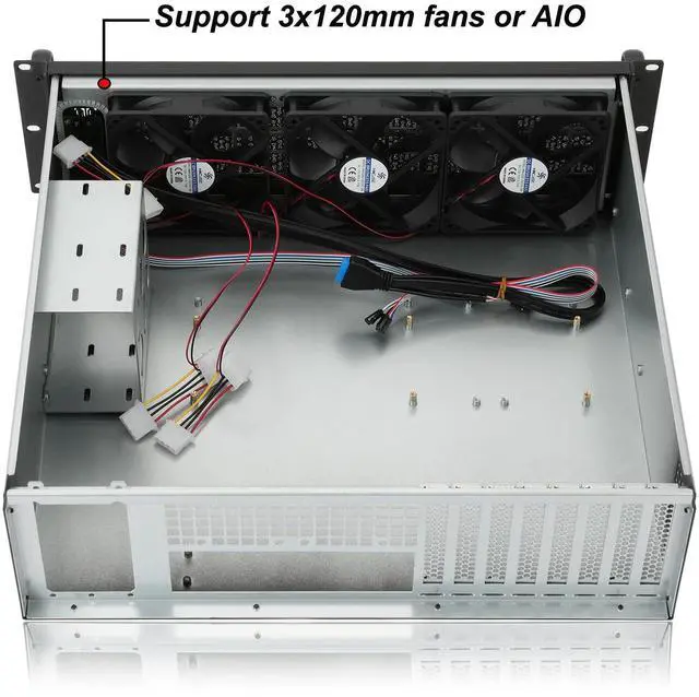 Includes 3120mm fans (pre-installed) or supports 360mm liquid cooling radiators (pre-installed fans must be removed).