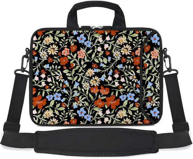 RICHEN 14 15 15.4 15.6 inch Laptop Shoulder Bag Messenger Bag Notebook Handle Sleeve Neoprene Carrying Case with Accessories Pocket (14-15.6 inch, Flowers2)