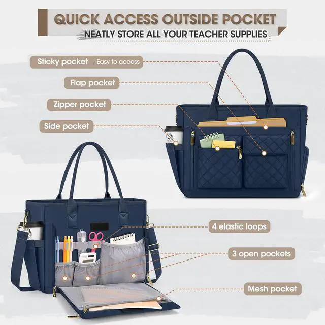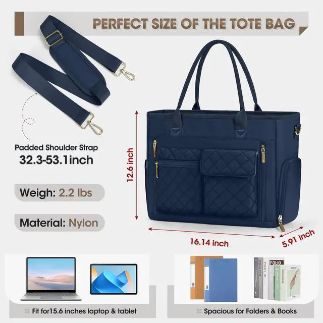 Carry: With a comfortable shoulder strap and sturdy handles, you can carry this work bags as a shoulder bag, office bag, or crossbody bag. It's perfect for commuting, work, and weekend travel. The back luggage strap slides over your suitcase handle, making this bag ideal for business trips and travel. It fits easily in overhead bins and under the seat, perfect for frequent flyers. ^^ Ideal Gift for WomenThis laptop tote bag combines elegant appearance with practical design. Large capacity and multiple storage make it a great choice to use as a teacher bag, nursing bag, professional work bag, business travel bag or weekend getaway carry-on bag. Perfect for commuting teachers, tutors, nurses, business ladies, etc. An ideal gift for teachers, nurses and parents for any holiday, birthday or anniversary. Also an ideal teacher appreciation gift.