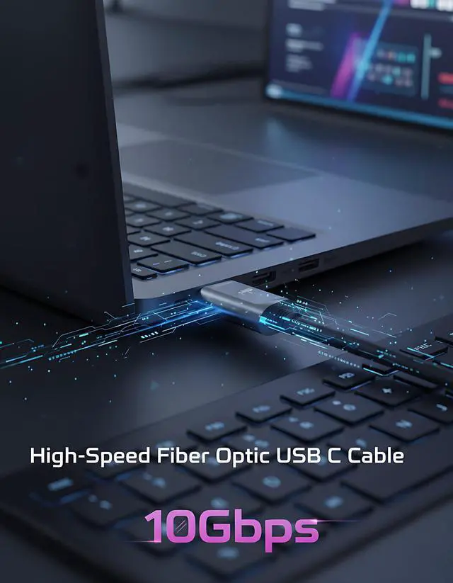 10Gbps Optical Speed with German SiliconLine ChipThis active optical USB-A to USB-C cable is powered by a premium German SiliconLine conversion chip, delivering stable 10Gbps high-speed data with zero latency, zero frame drops, and zero electromagnetic interference. ideal for 4K cameras, business conferencing, VR streaming, data center, high-precision control systems, and other demanding applications. ^^ Enterprisegrade fiber optic USB A to USB C cable designed for longdistance connections, delivering up to 10 Gbps USB 3.2 Gen 2 data speed with stable signal for conference rooms, control rooms and data centers when used with compatible devices.