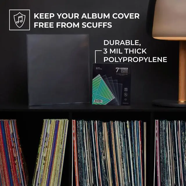 Measuring 7.42" x 7.42", they will fit any single records and LPs seamlessly. Plus, these sleeves are sturdy and long-lasting so you can keep your collection for a long time with ease. ^^ SUPERIOR MATERIAL FOR BEST VINYL PROTECTION Polypropylene is known for its high flexural strength, moisture and chemical resistance, and high-impact durability. Our protective vinyl covers are made from a quality material that most certainly delivers.