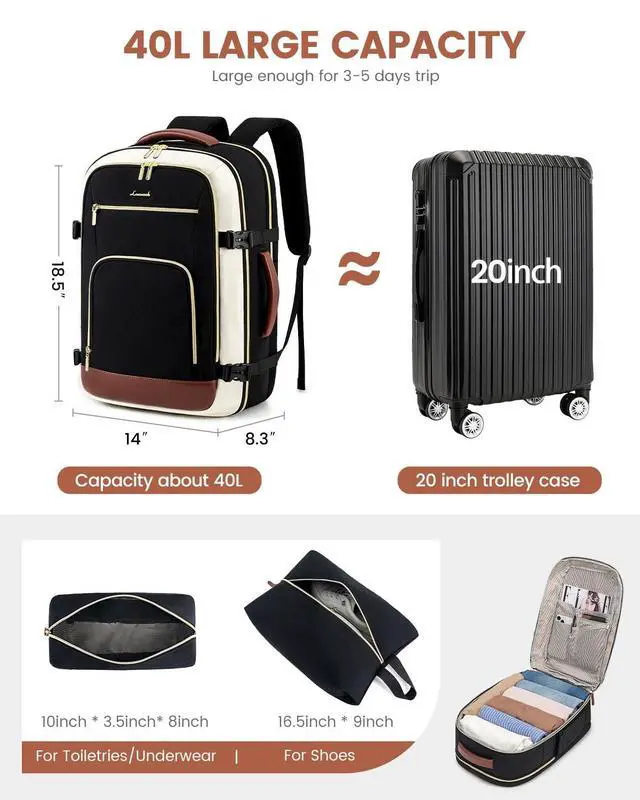Packing Cubes & Wet Pocket: Our travel backpack for women equipped with 2 carry-on cubes, deal for neatly storing underwear, socks, and small clothes. And equipped one shoe bag with 16.5 inches/42cm long, can hold 1~2 pair of shoes. The high-density waterproof wet pocket is perfect for toiletries and damp clothes, keeping your travel belongings tidy and separated. ^^ Ideal Gift for