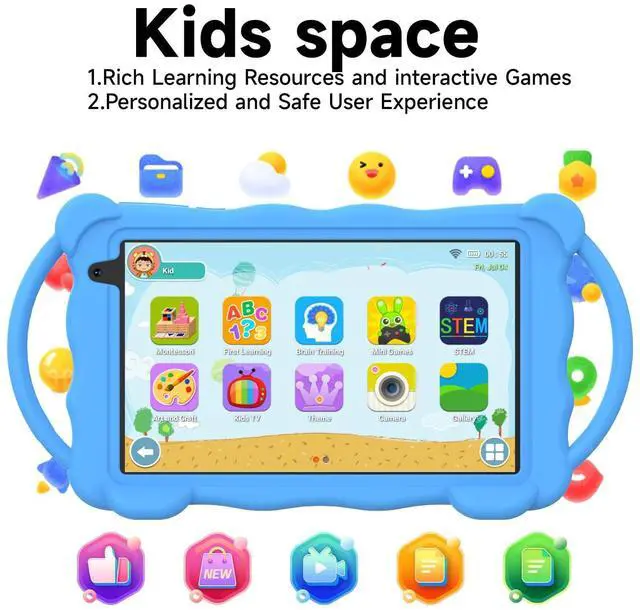 7-inch HD Touchscreen Kid-friendly size with bright, clear visuals for comfortable viewing ^^ 4GB RAM + 32GB Storage Smooth performance and enough space for apps, games, and videos ^^ Pre-Loaded iWaWa Learning System Interactive English lessons, math games, puzzles, and more ^^ Parental Control & Safe Mode Restrict screen time, block inappropriate content, and monitor usage ^^ Long-Lasting Battery Keeps kids entertained for hours without frequent charging