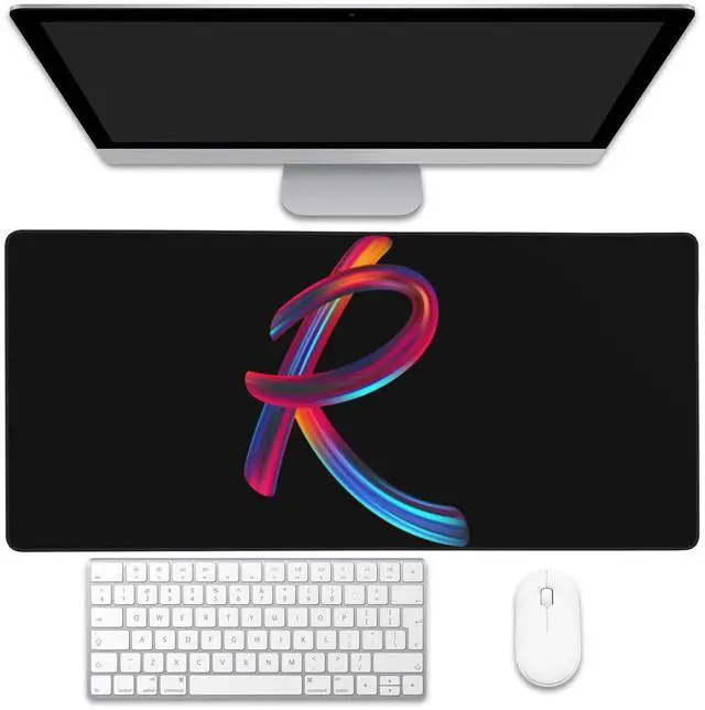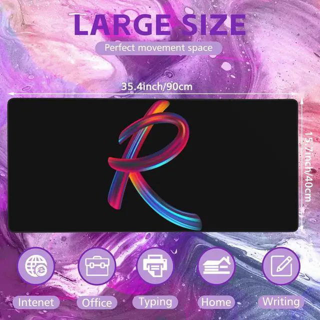 KOAIWPAE Desk Pad, Colorful Letter R Extended Gaming Mouse Pad Large, 35.4"x15.7" Big Mouse Pad with Non-Slip Base and Stitched Edge, Long Computer Keyboard Mouse Mat for Home Office Work