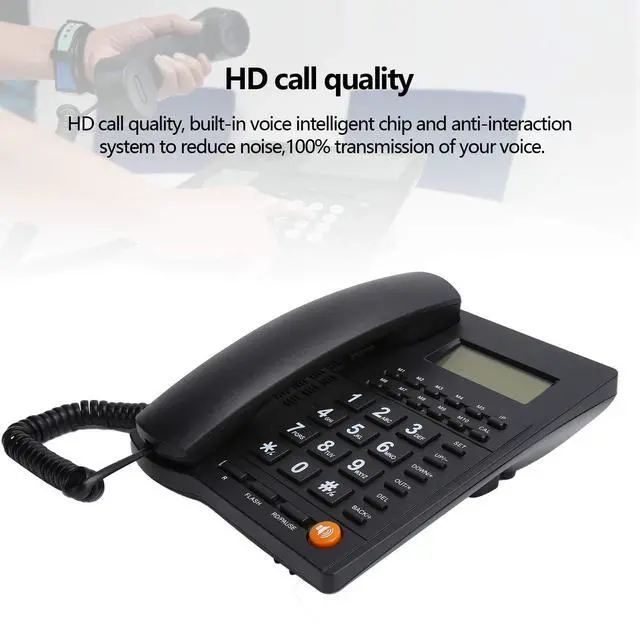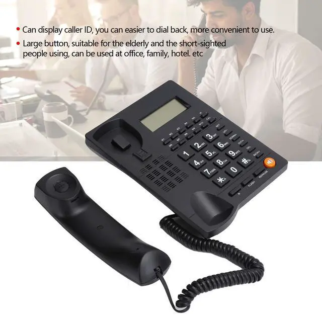 [HANDS-FREE CALLING] Enjoy convenient hands-free calling with the volume control button for easy adjustment. ^^ [LARGE BUTTON DESIGN] Specifically designed for the elderly and visually impaired, making it easy to use at home, in the office, or in a hotel setting. ^^ [CALLER ID FEATURE] Easily view incoming calls and dial back with the caller ID function, adding convenience to your communication. ^^ [HD CALL QUALITY] Experience crystal clear calls with the built-in voice intelligent chip and anti-interference system that reduces background noise for optimal voice transmission. ^^ [RELIABLE CONSTRUCTION] Crafted from high-quality ABS material, this phone is strong, reliable, and features a comfortable texture for long-lasting use.