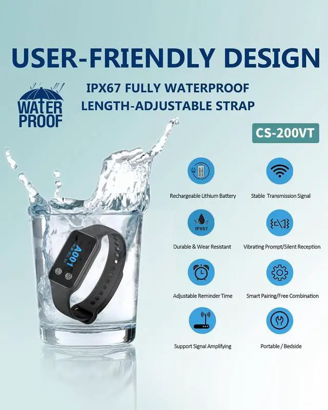 WATERPROOF CALL BUTTONS: The 2-key call buttons are of IPX67 fully waterproof quality and it has cancellation key function. It can be carried in a pocket or sticky on the table or wall for timely calls ^^
