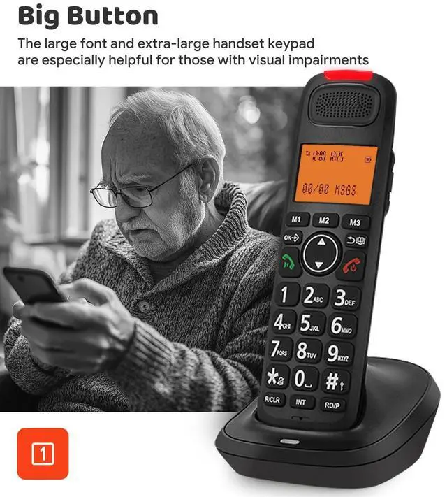PHONEBOOK DIRECTORY: Easily store up to 50 names and numbers in the phonebook directory for quick access to frequently called contacts. This feature helps you save time by dialing your most important numbers with just a few clicks. ^^ 3 LINES DISPLAY SCREEN, BIG BUTTONS &VISUAL