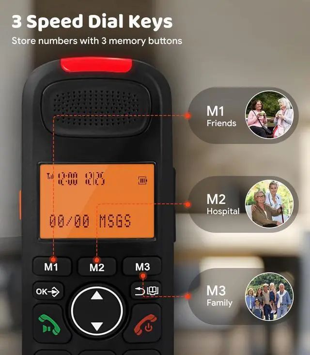 ^^ Speed Dialing: With the convenient one-touch dialing feature, making calls has never been easier! You can store up to 3 important numberswhether it's for your parents, friends, or anyone else you need to stay in touch with. No more worrying about forgetting phone numbersjust a single tap and you're connected! ^^ FULL-DUPLEX SPEAKERPHONE & 28DB