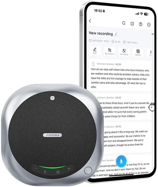AI Transcription and SummarizationExperience the power of AI with our advanced transcription and summarization capabilities. The M6 Bluetooth speaker with microphone supports unlimited cloud storage and offers a complimentary three-month trial. Effortlessly convert speech to text and generate concise meeting summaries, enhancing productivity and clarity. ^^ GPT-Based Writing and Real-Time Subtitles BLeveraging GPT technology, the M6 assists in writing, recording remote meetings, and providing real-time subtitles. This feature caters to various devices and formats, making it ideal for both online and offline meetings. Enhance efficiency and intelligence across all office and educational needs with seamless integration.