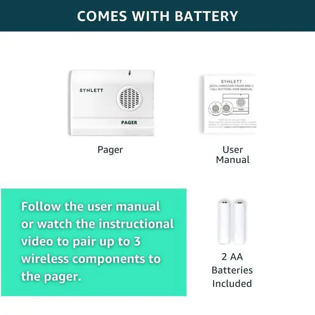 ^^ PORTABLE CAREGIVER PAGER: This wireless pager accessory ONLY comes with a portable pager and the batteries needed for the pager. Remove the insulating tab from the battery compartment and the pager is ready to function.