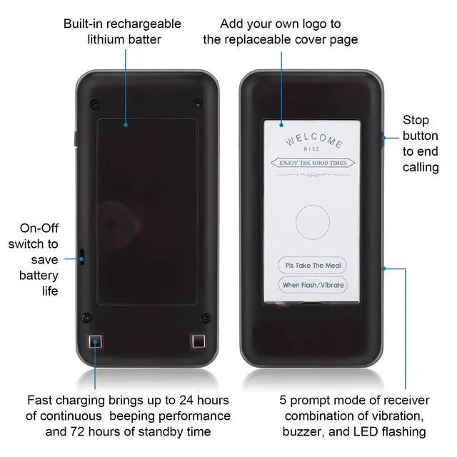 1 Pager for Restaurant Pager System Replacement The high-quality pager, specifically designed to enhance your restaurant pager system. This single replacement unit offers convenience and efficiency, ensuring seamless communication between staff and customers. Versatile in its application, this pager is suitable for a variety of settings, making it an ideal choice for restaurants, cafes, and other dining establishments. Its waterproof and durable design ensures reliable performance, even in the most demanding environments. Upgrade your service experience with the restaurant pager the perfect solution for maintaining exceptional customer satisfaction.