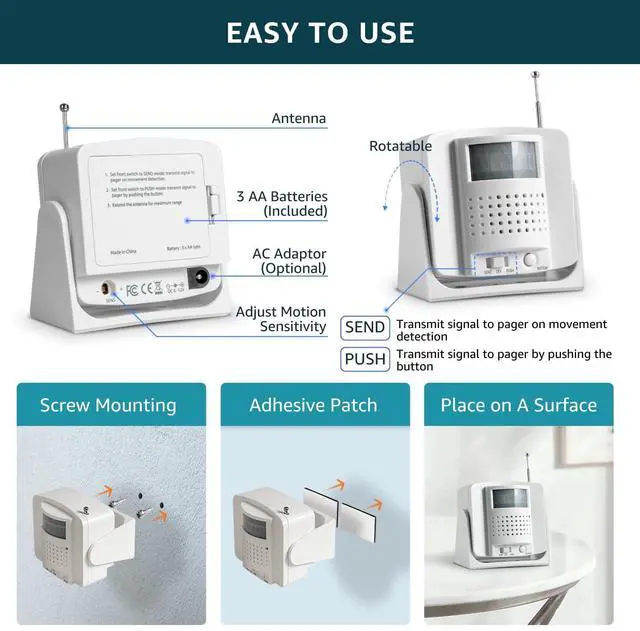 SIMPLE TO USE: This smart wireless motion sensor alarm indoor works in conjunction with SYNLETT simple alert system SP30 Pager or M091B Receiver ONLY. It can be placed by bed or doorway to monitor resident activities. It MUST be programmed to SYNLETT simple caregiver pager M091B or SP30 pager to function. NOT compatible with the SYNLETT wireless call system - CMU.