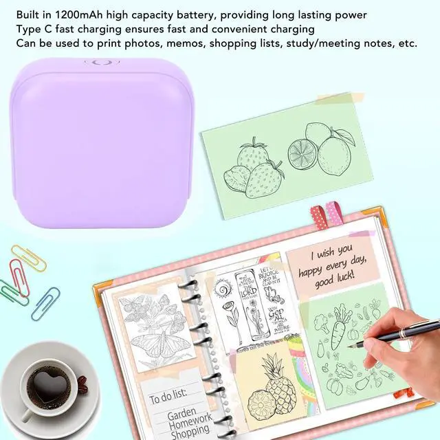 User friendly interface makes editing and printing simple. ^^ [Long Battery Life] Built in 1200mAh high capacity battery for long usage time, supports Type C fast charging. Can be used for printing photo, memo, shopping list, study or meeting notes, etc.
