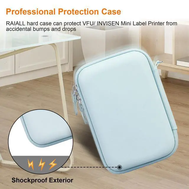 Label Maker Case RAIALL thermal printer case combines appearance design with mini sticker printer label maker for breakthrough vision experiences, and offers a nice amount of protection wherever you go. Meanwhile, This mini thermal printer case external dimensions: 6.46 x 4.4 x 2.5 inches, also perfectly fits for VFU label maker/INVISEN sticker maker, label maker rolls, usb cable and other printing accessories.