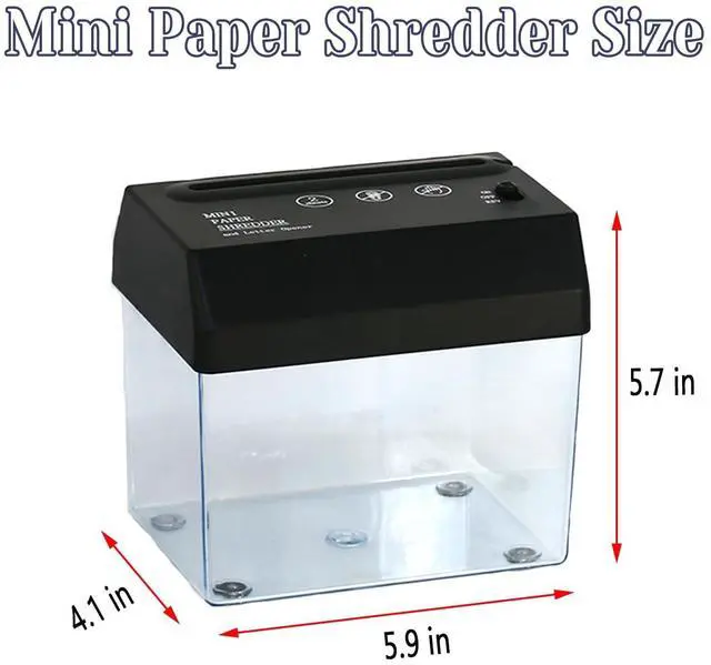 Introducing the electric mini A6 paper shredder. Tired of bulky and inconvenient shredders? Look no further! Our home paper shredder is compact and lightweight, making it easy to use and store. With dimensions of just 5.9 x 4.1 x 5.7 inches, the sleek design fits perfectly in any home or office space. Powered by either a USB or 4 AA batteriesnot included, this shredder is incredibly versatile. No need to worry about finding a power outlet when you can easily power it up with batteries. The automatic shredding feature makes it effortless to use, saving you time and energy.