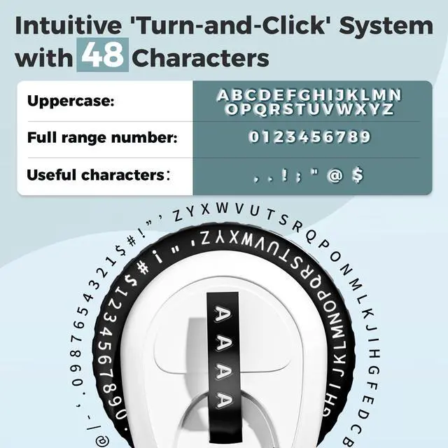 2. Featured wheel with 48 characters, including full English, numeric characters, and common symbols. 3. Ergonomic Design fits the curvature of your hand to make printing easier. 4. Embosser Label Maker Printing 3D effects embossing label tape for easier to read. 5. Built in cutting design is safer for kids and older ^^ Easy-to-Use Retro Emboss Label Maker - no need batteries, ink, charge, app, just simply rotate the wheel and press, you will get a embossing label tape with clearer letters, numbers and symbols every time.