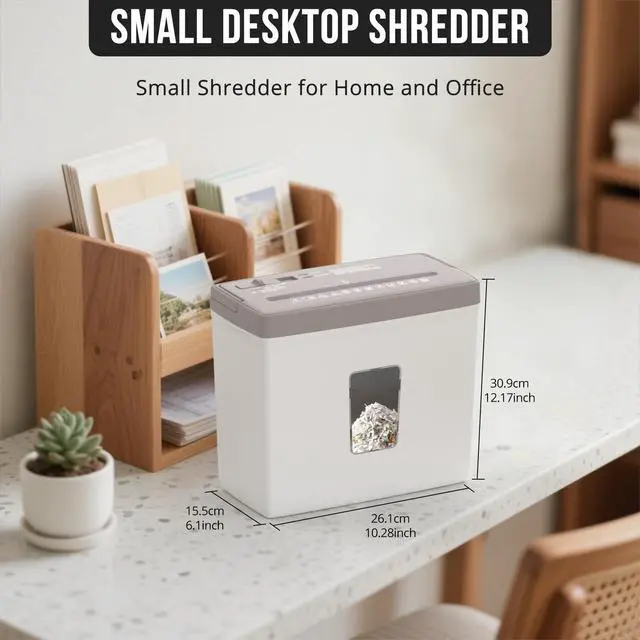 Space-Saving Mute Compact Design: Measuring 12 x 6 x 10 inches, this sleek shredder fits perfectly desktopunder desks or in tight corners. The 2.38 -gallon transparent bin allows for easy monitoring, while the integrated handle ensures mess-free waste disposal ^^ Reliable