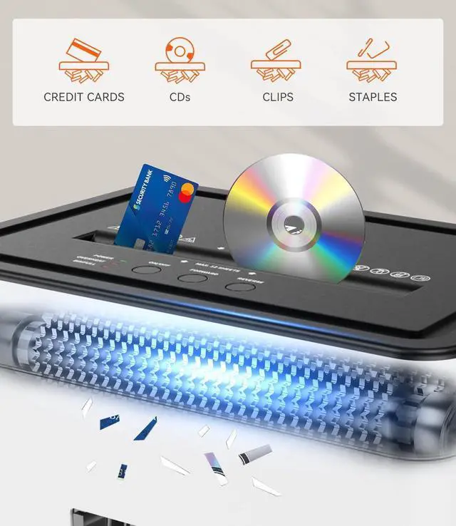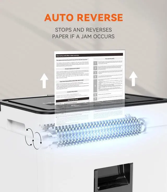 ^^ VERSATILE FUNCTIONALITY- In addition to paper, this shredder can shred credit cards and staples, offering comprehensive document handling capabilities. ^^ CONTINUOUS RUNNING- Allows continuous operation for up to 10 minutes in manual feed mode, making it ideal for home office use. ^^ STAY INFORMED- LED indicator lights provide updates on the shredder's status, including standby, overheat, bin-full, overload, and door open, ensuring you are informed about its operational condition. ^^ 1-YEAR WARRANTY & HIGH-QUALITY MATERIALS- Professional shredders come with a one-year worry-free warranty, even if the return window is closed.