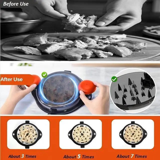 Large-Capacity Removable Plate: The chicken breast shredder includes a removable plate with lifting holesunload shredded meat instantly and keep shredding batches nonstop. Unlike other chicken breast shredders without a removable plate require the inconvenient process of manually dig out the shredded meat ^^