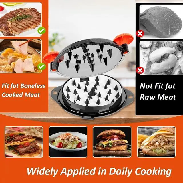 Razor-Sharp Stainless Steel Spikes: This chicken shredder tool features stainless steel spikes that effortlessly tear through cooked chicken, pork, or beef 2x faster than those made with flimsy plastic shredders. Perfect for shredded chicken salads, tacos, BBQ pulled pork, prepping pet foodor meal prep rust-resistant and built to last ^^ Unique Clips & Hanging Design for