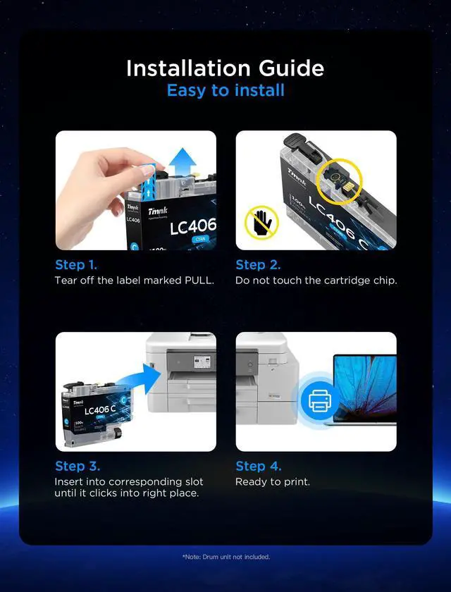 Latest Upgraded Chip, 100% compatibility! Super Larger Capacity. Count on this lc406 ink cartridge ^^ Compatible with MFC-J4335DW MFC-J4335DW MFC-J4345DW MFC-J4345DW MFC-J4535DW MFC-J4535DW MFC-J5855DW MFC-J6555DW MFC-J6955DW MFC-J5955DW HL-JF1 Printer.