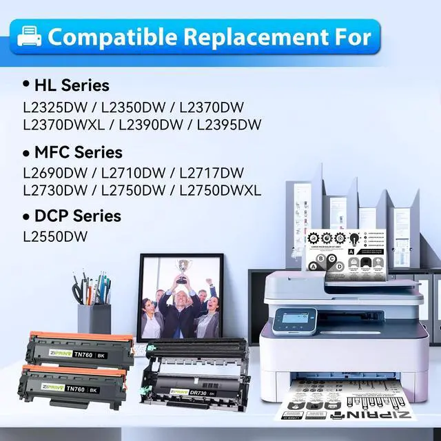 Superior Performance: Every ZIPRINT TN 760 TN-760 toner cartridge and DR730 drum unit passes multi-phase quality testing for flawless print results and printer protection
