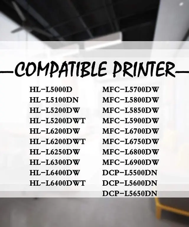Printer Compatibility: Compatible with HL-L5000D DCP-L5500DN DCP-L5600DN DCP-L5650DN HL-L5100DN HL-L5200DW HL-L5200DWT HL-L6200DW HL-L6200DWT HL-L6250DW HL-L6300DW HL-L6400DW HL-L6400DWT MFC-L6750DW MFC-L6900DW MFC-L5700DW MFC-L5850DW MFC-L5800DW MFC-L5900DW MFC-L6700DW MFC-L6800DW Laser Printer