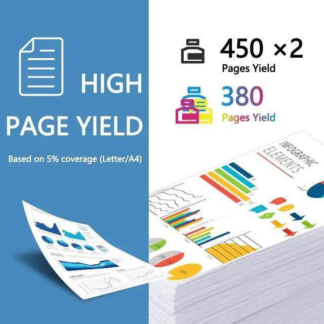 Page Yield: Print More with XL --- Up to 450 pages per 275XL Black, 380 pages per 276XL color cartridges (Cyan, Magenta, Yellow) (5% coverage) ^^ High